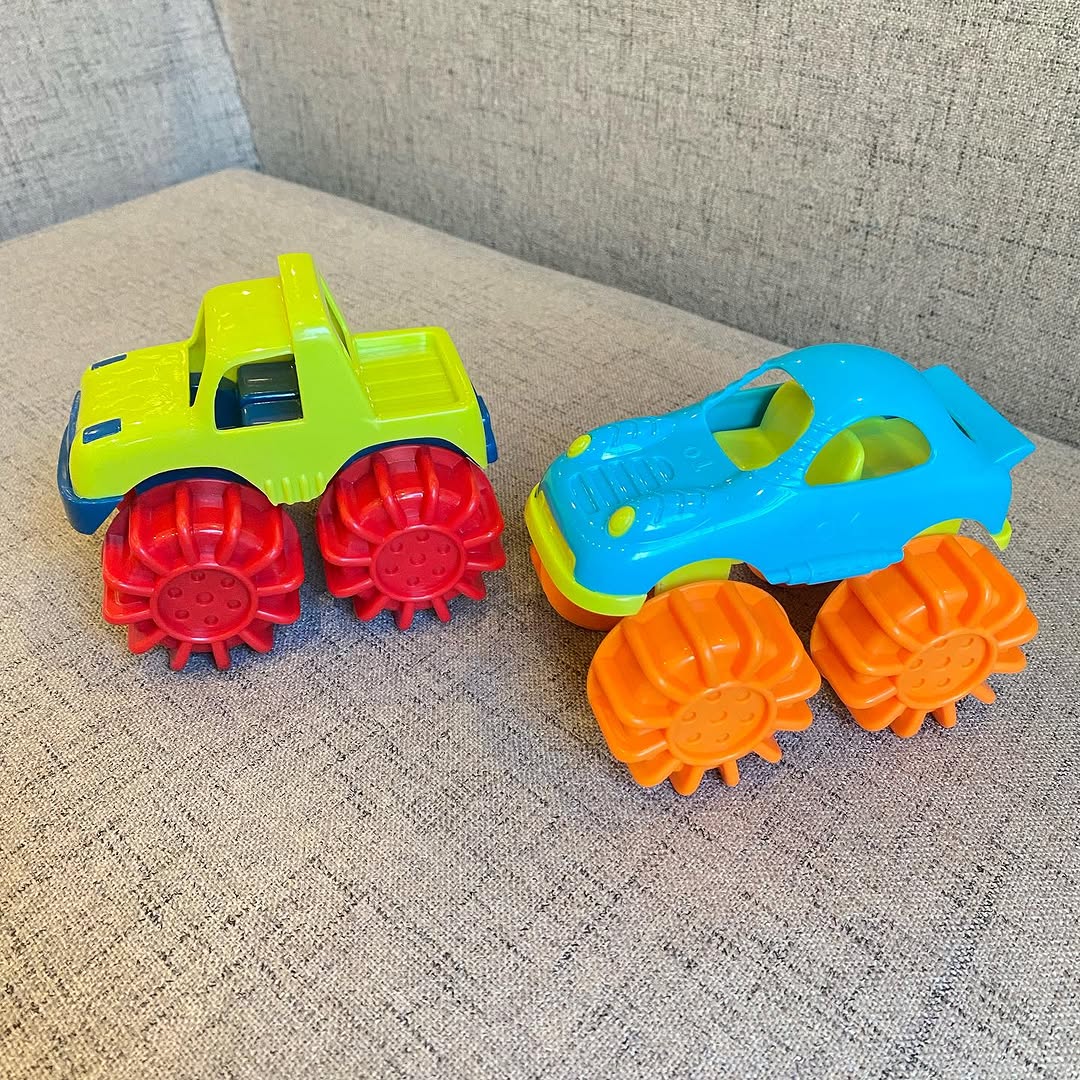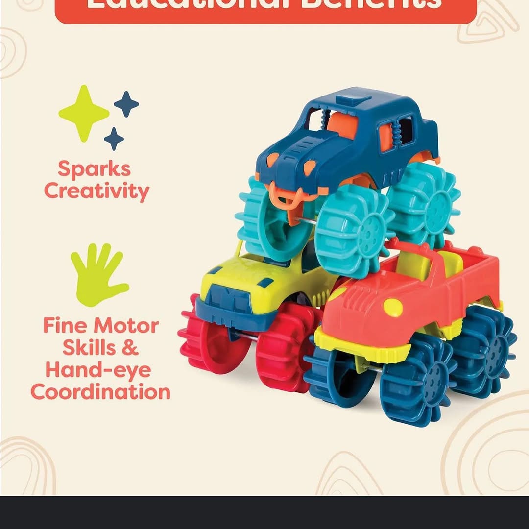 Price 3250/- B toys 6 Mini Monster Trucks for Kids with Storage bag.