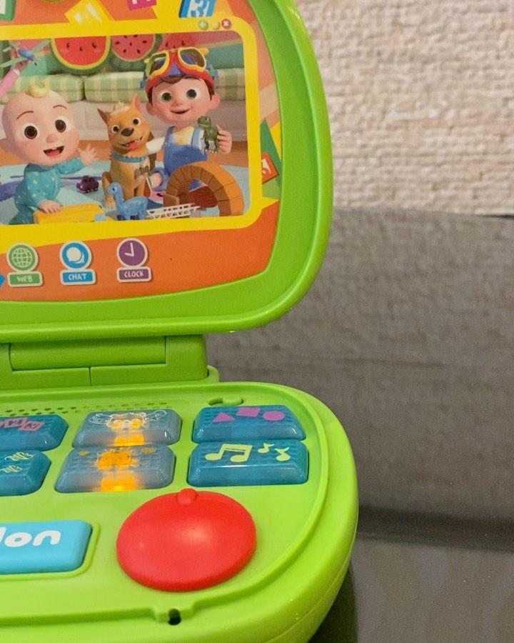 Price 2250/- CoComelon Sing and Learn Laptop Toy for Kids, Lights, Sounds, and Music Encourages Letter, Number, Shape, and Animal Recognition, Officially Licensed Kids Toys for Ages 18 Month by Just Play #preloved