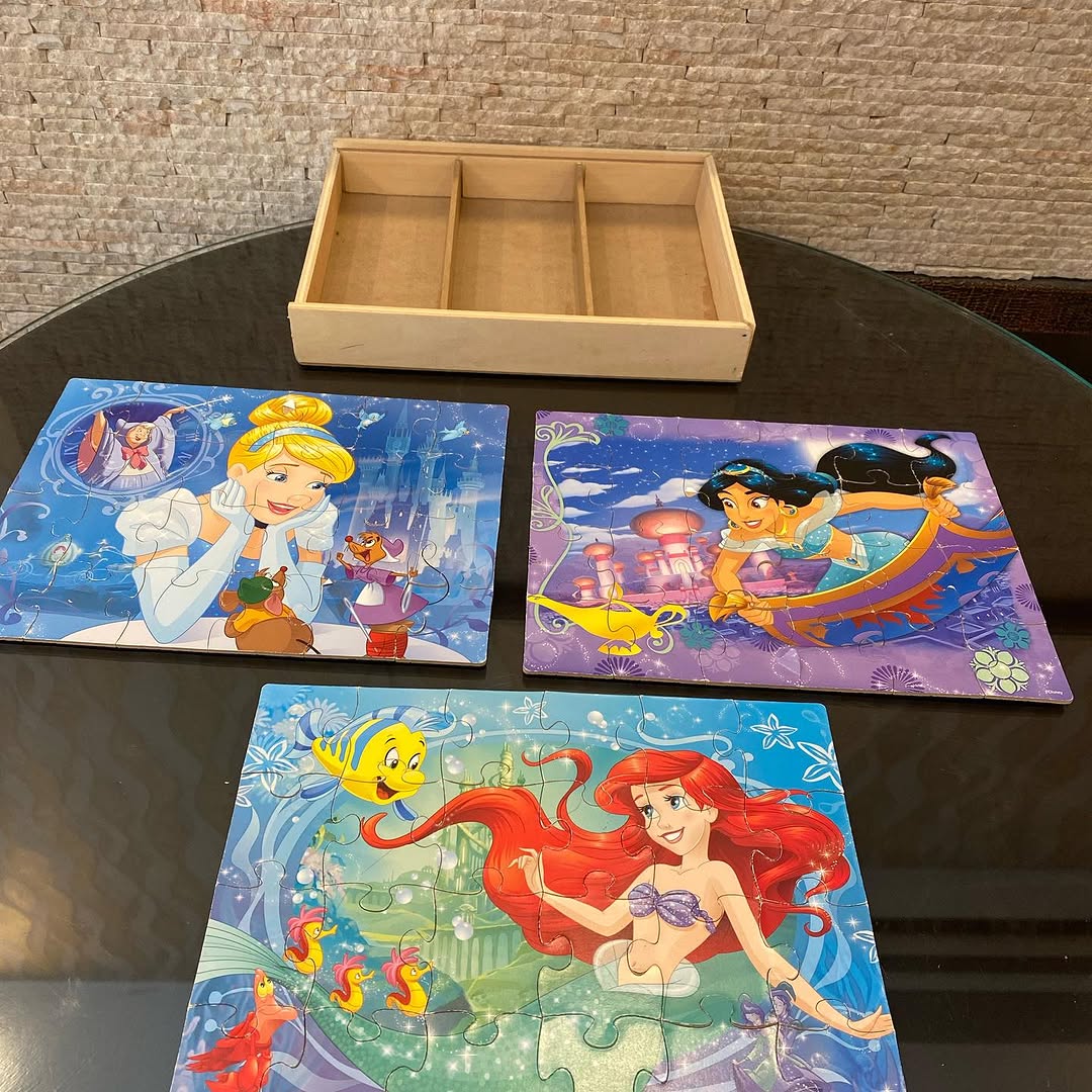 #Sold Price 1599/- Wooden Puzzle Disney Princess 3 Pck IN Storage Tray Assortmnt #preloved