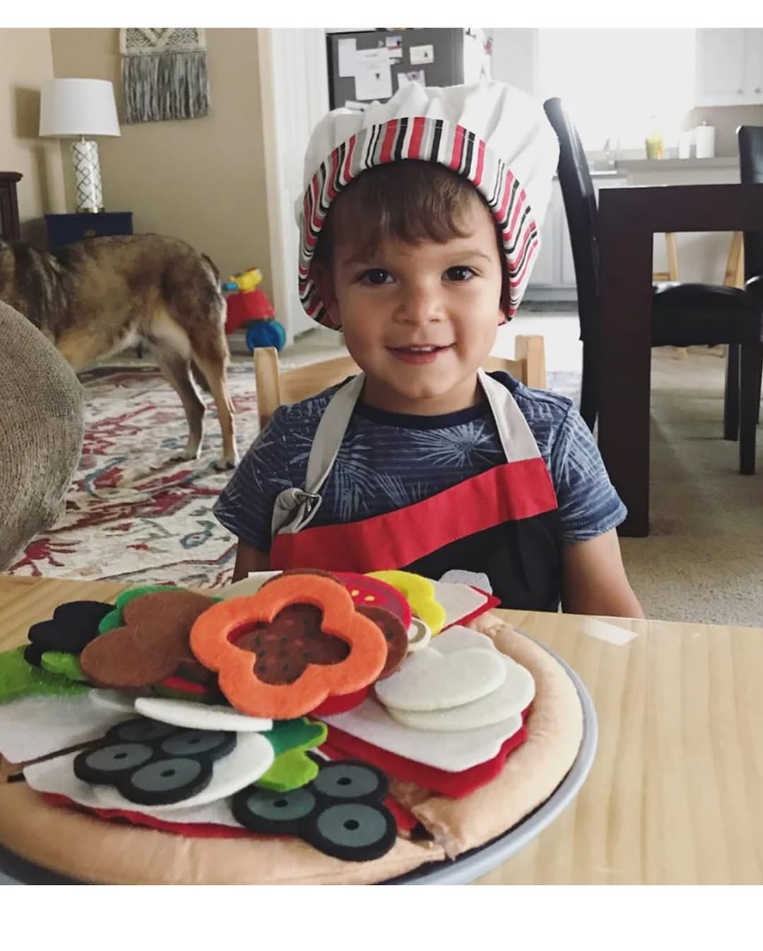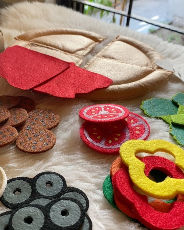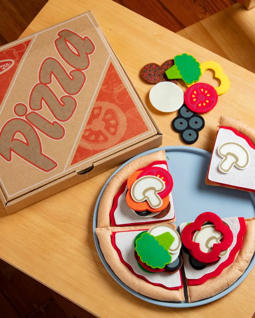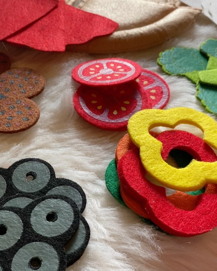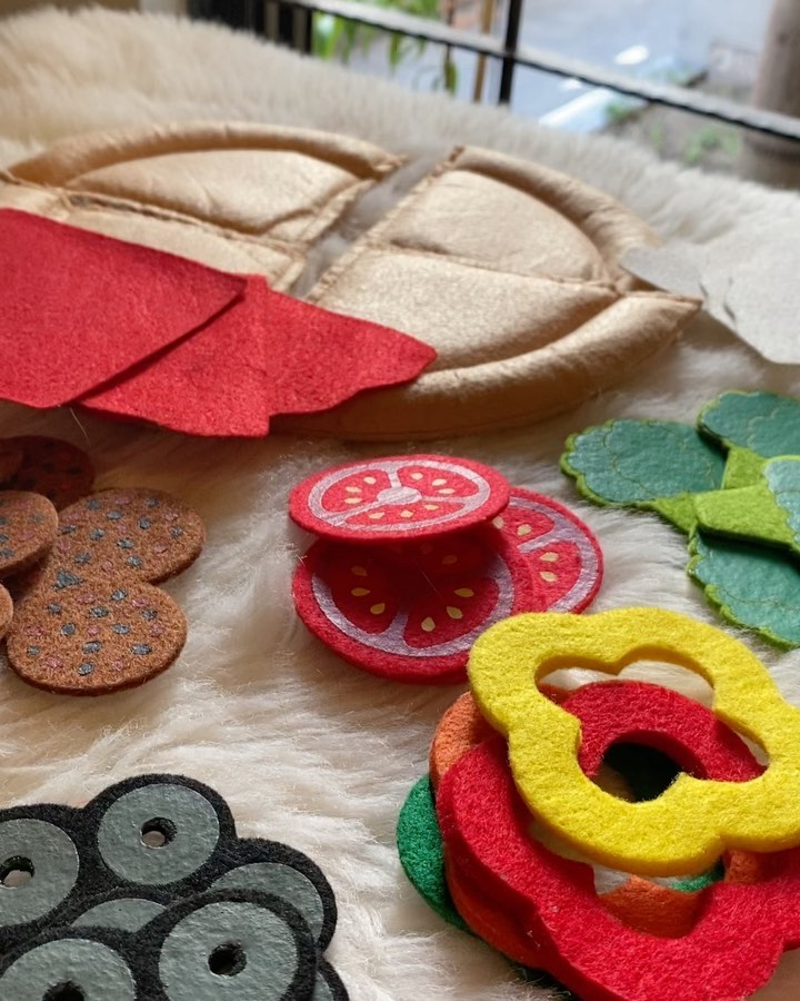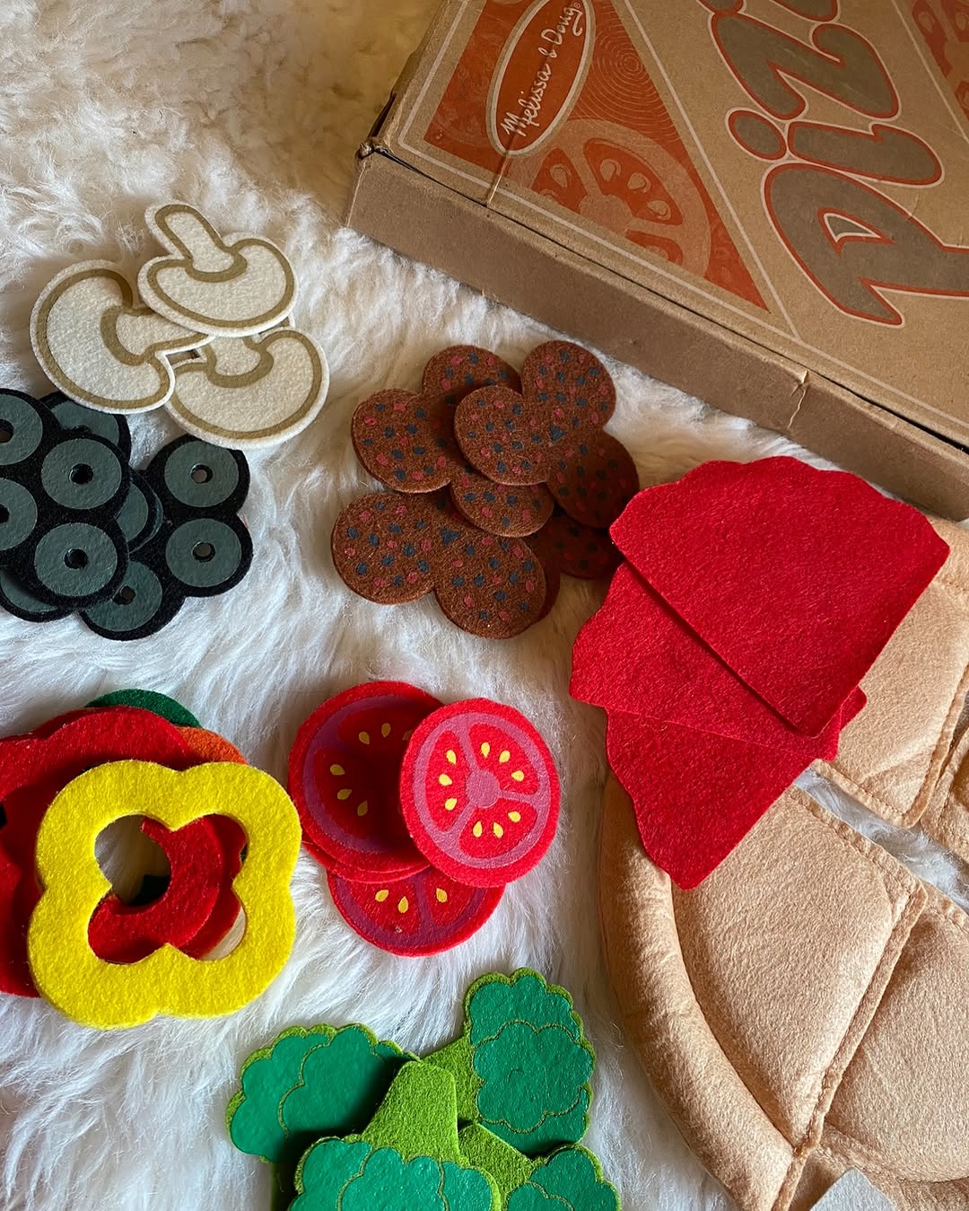 Lots of felt food pieces including a wide variety of toppings. Promotes imaginative play and creativity