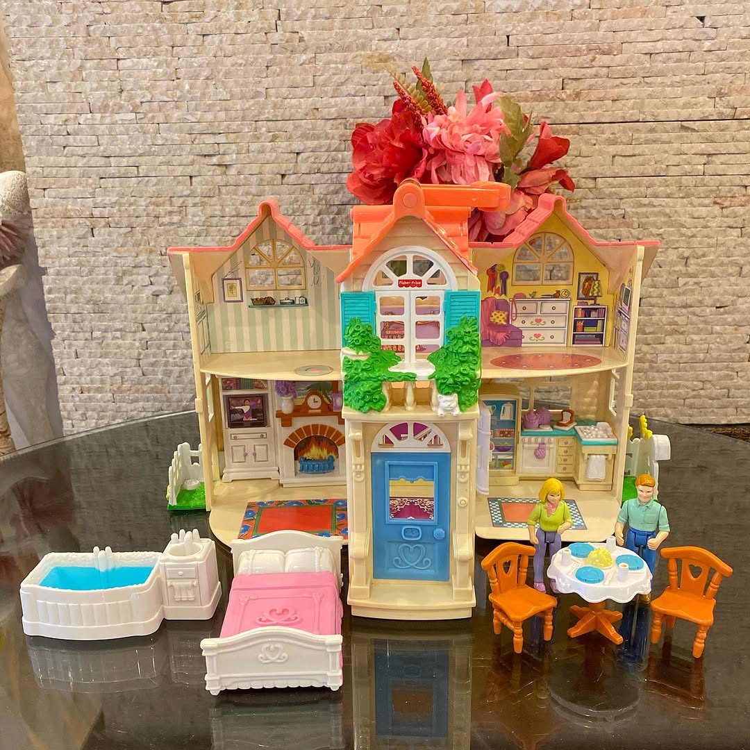 Fisher Price Vintage Country Cottage Sweet Streets Doll House Mattel with Original Characters #preloved