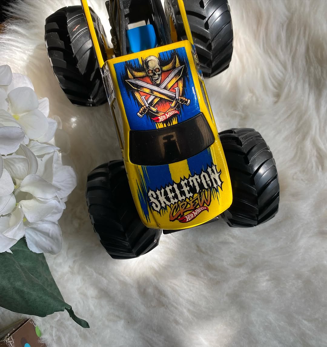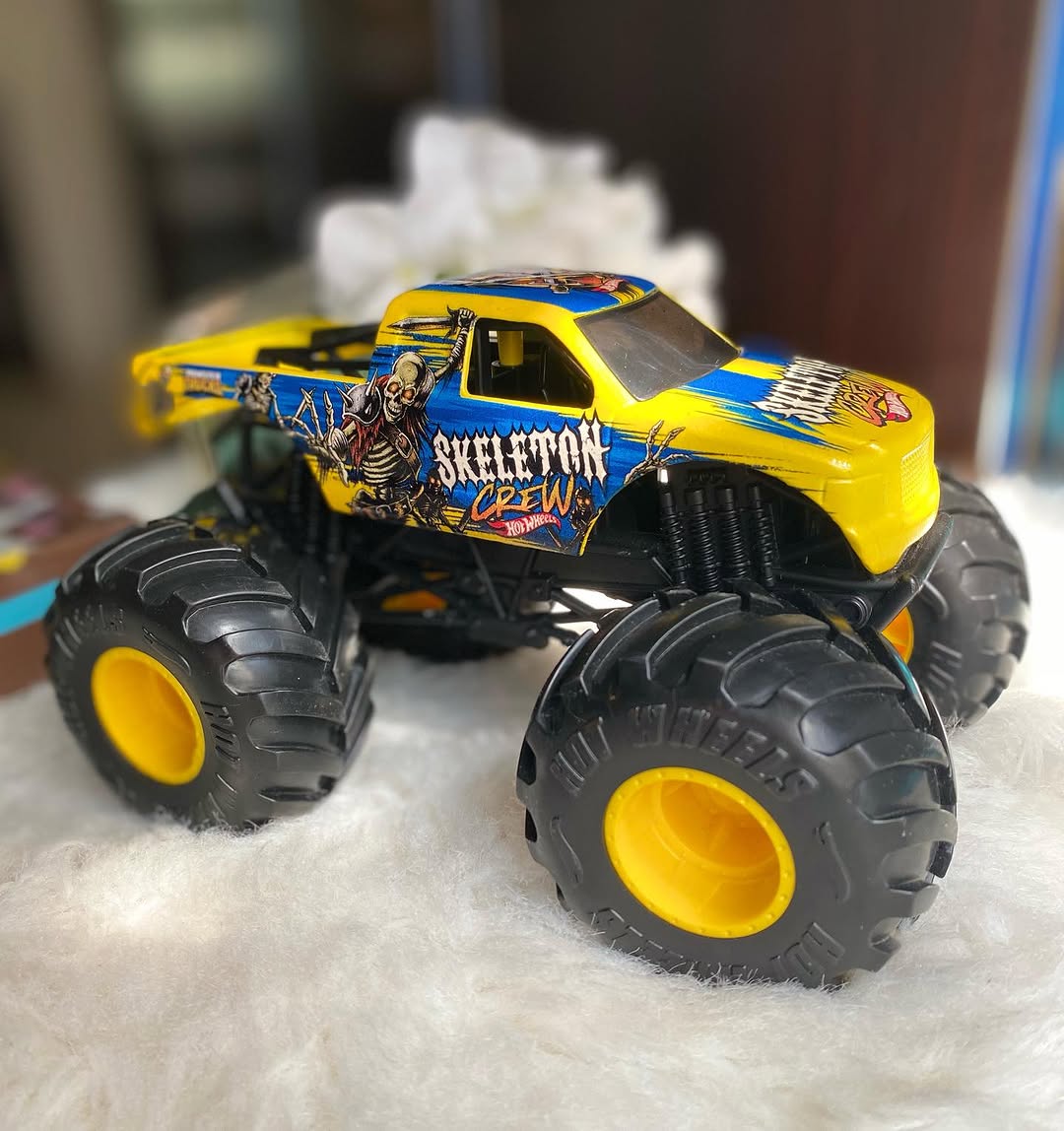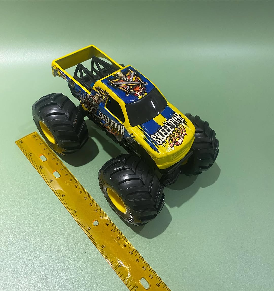 #Sold Price 1650/- The Hot Wheels Monster Trucks 1:24 scale die-cast trucks are THE baddest trucks ever built for competition and ultimate dominance! Ready to square off in head-to-head battles with their oversized body and GIANT wheels! Every truck package provides stats for each monster truck including name, truck type, strength, unique crash attack and motor-vation for great storytelling fun!
