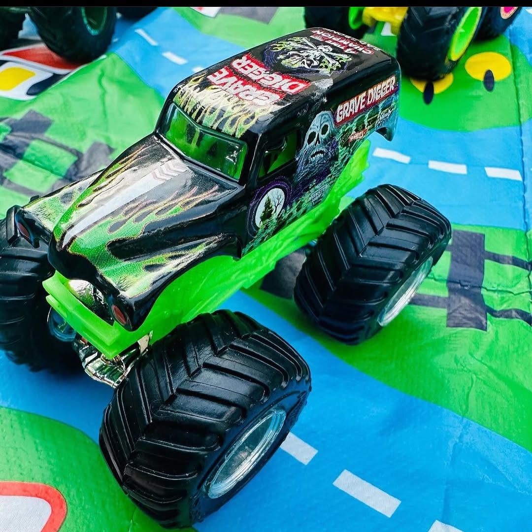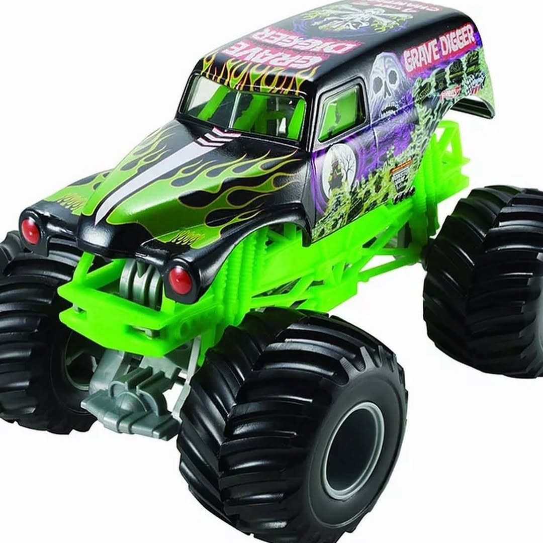 5) Hot wheels and Wheels Monster Jam Grave Digger Die-Cast Vehicle, 1:24 Scale, Black and Green #preloved