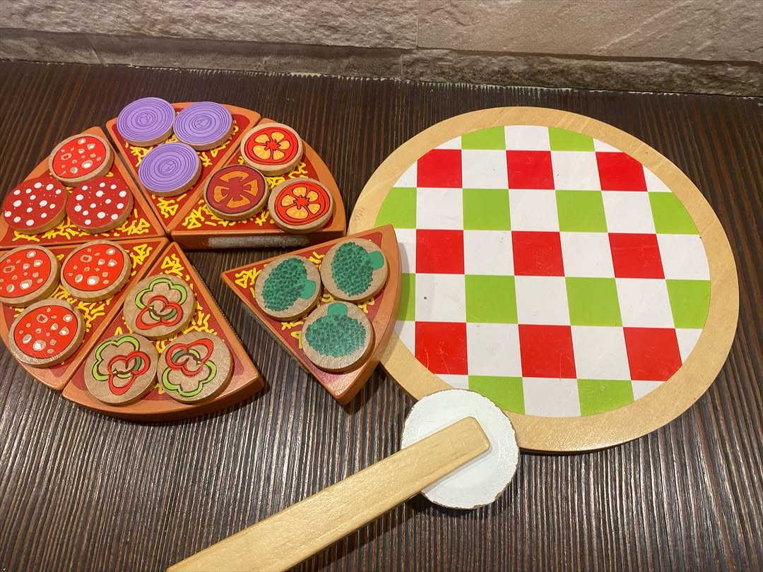 #Sold Price 1950/- Kids Pretend Play Simulation Wooden Sticky Pizza Kitchen Food Play Cutting Baby Role Playing Game Toy #preloved