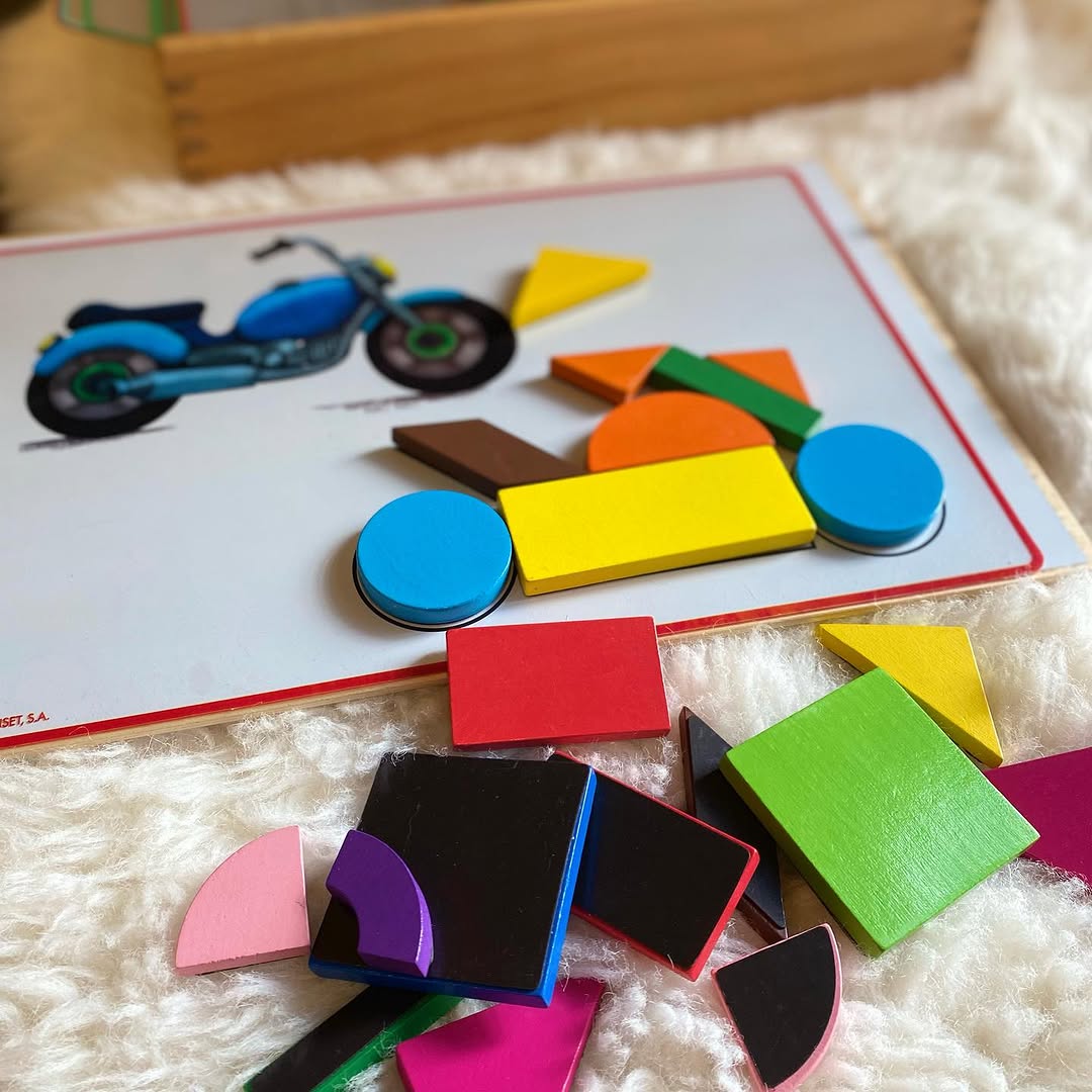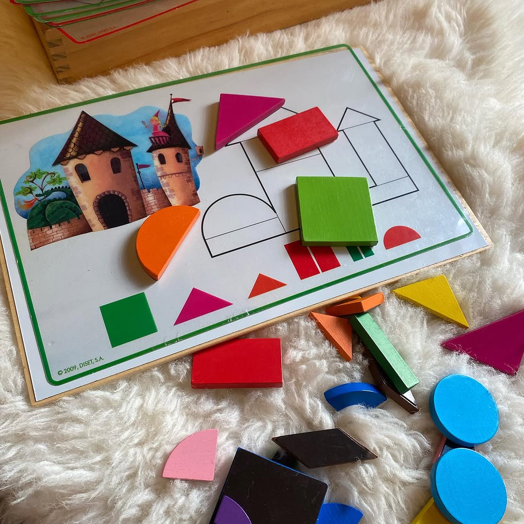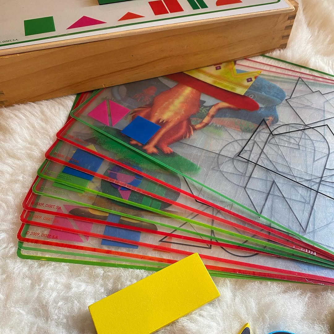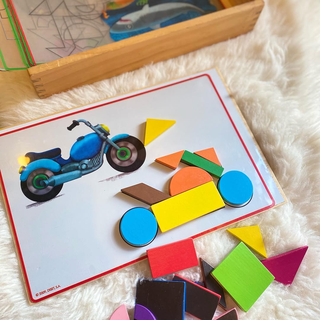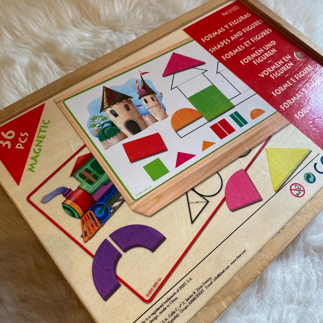 With the Magnetic mosaic set wood They will learn the different geometric shapes by creating figures on a magnetic board fun design and modern intercommunication and mathematical language. #preloved
