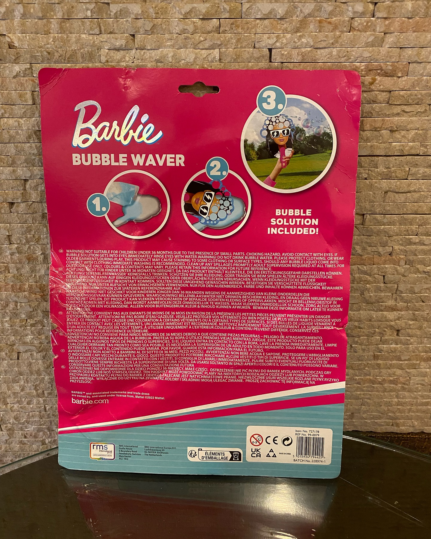 Make every day magical with this Barbie Bubble Waver! Get ready for awesome bubble power with this top-notch bubble set – you’ll have bubble dreams for days. Includes an easy-to-use waver plus bubble solution to make a bubble-tastic time. Get poppin Age 3+ Create the perfect bubble hairdo and become the belle of the ball! Let your imagination run wild with endless bubble possibilities that will take your looks to a whole new level. It’s your chance to create something as beautiful as you are! Go ahead and get your bubble sass on!