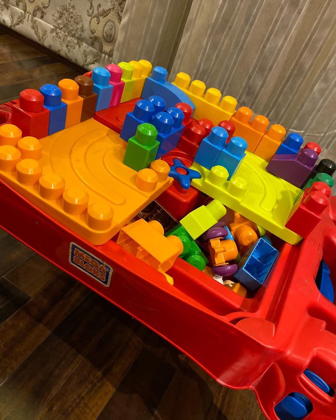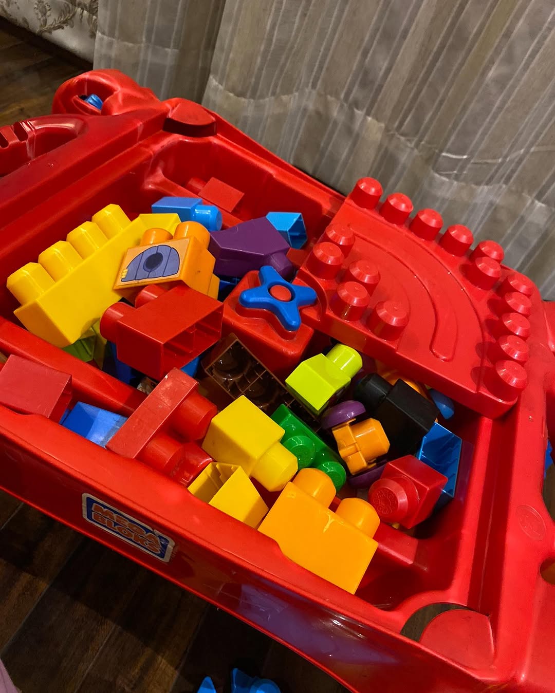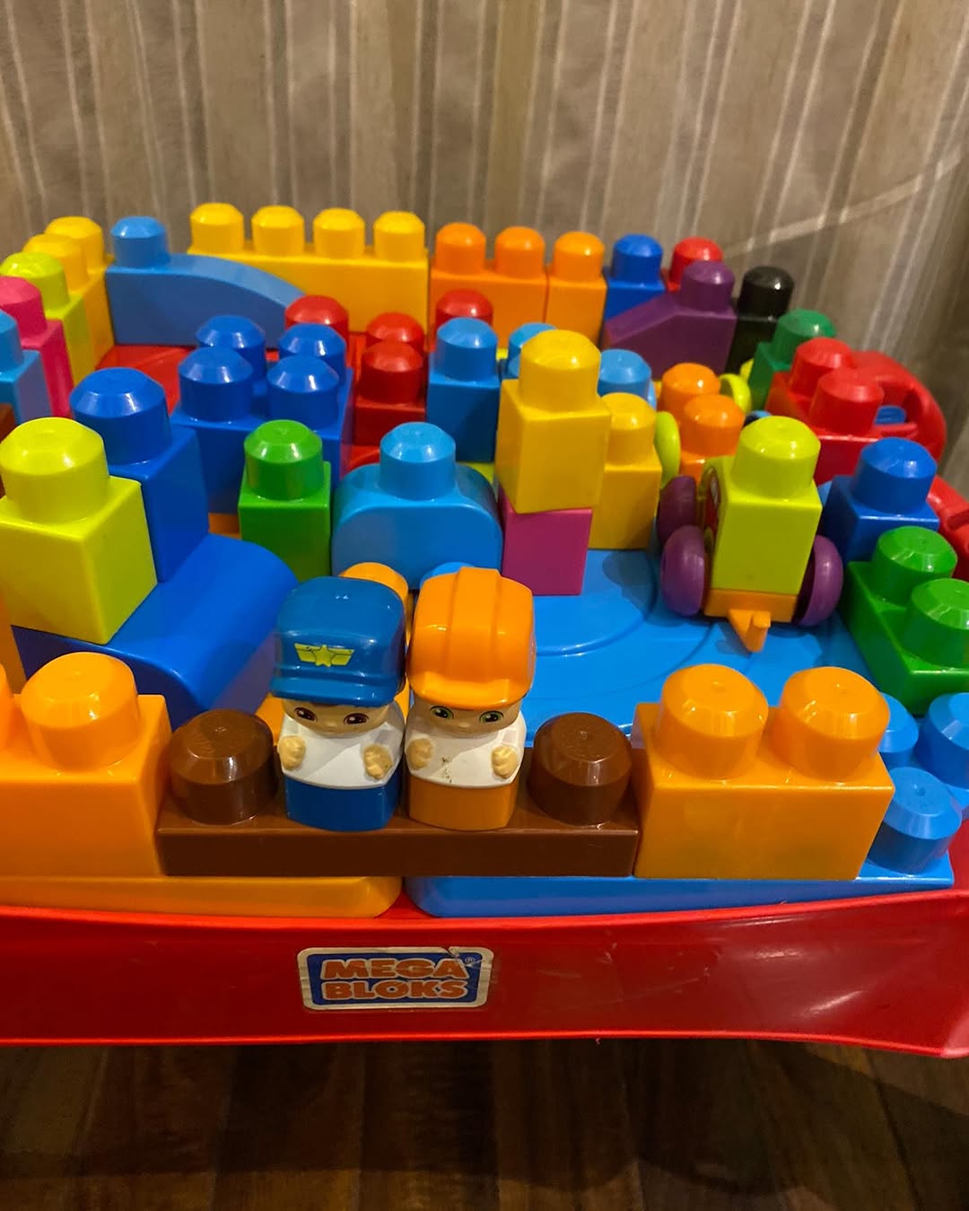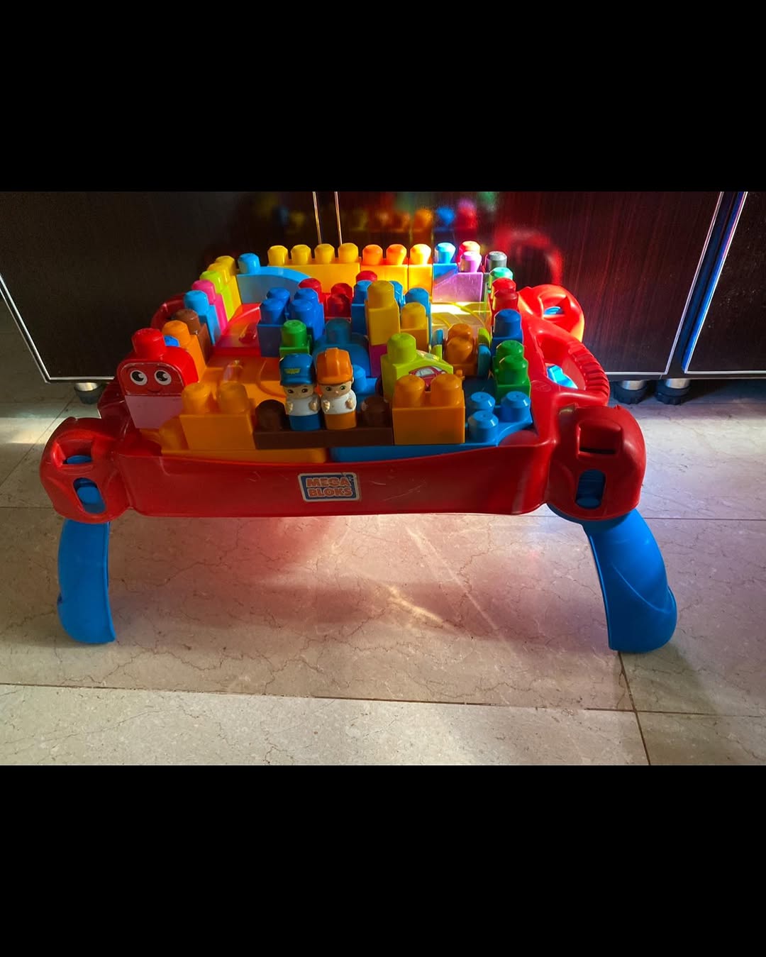 Price 5500/- Mega Blocks Table with 40 Mega Blocks Original #preloved