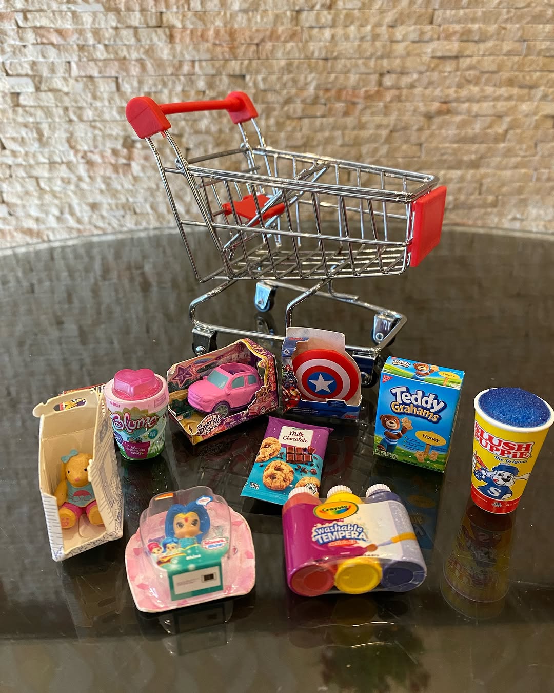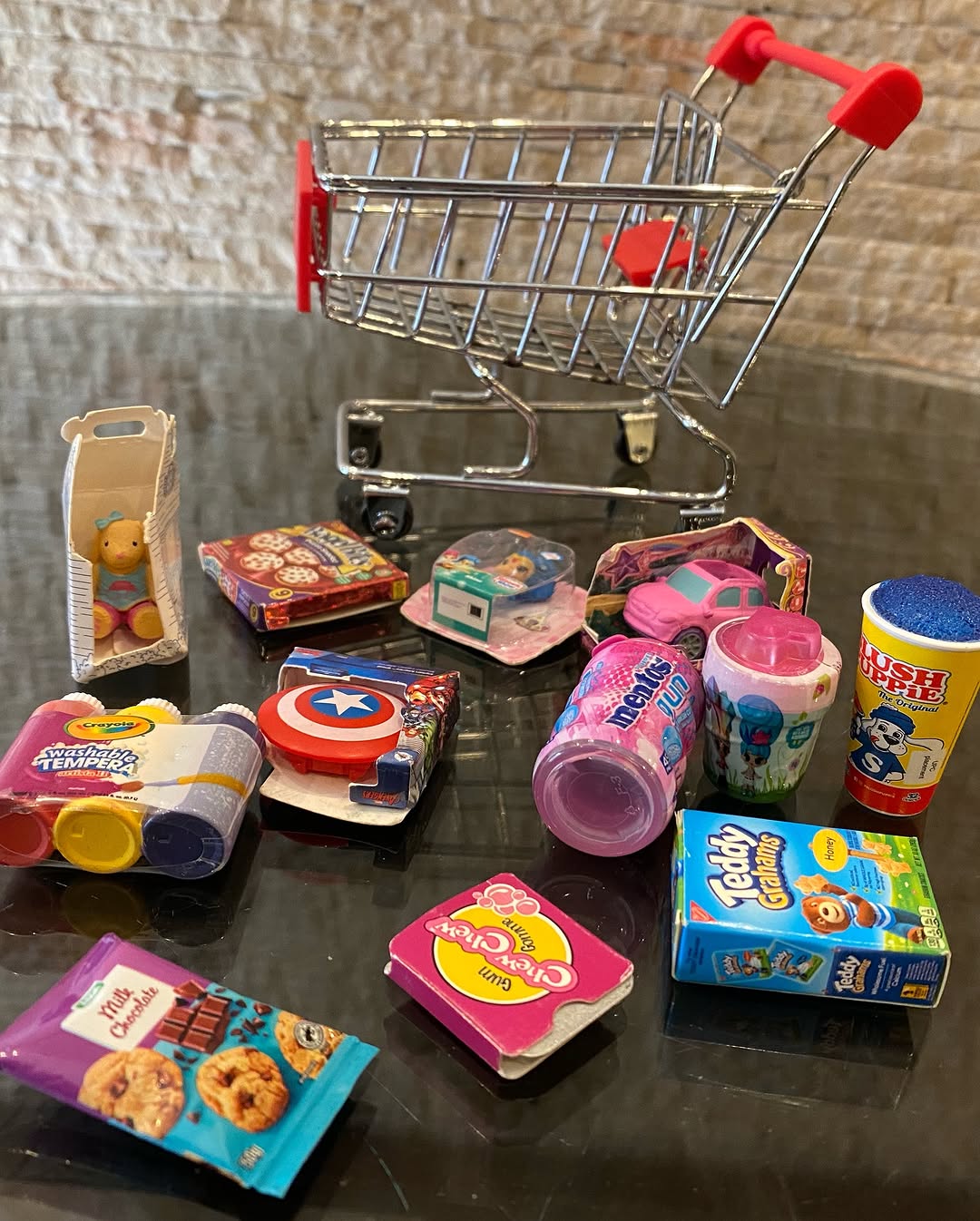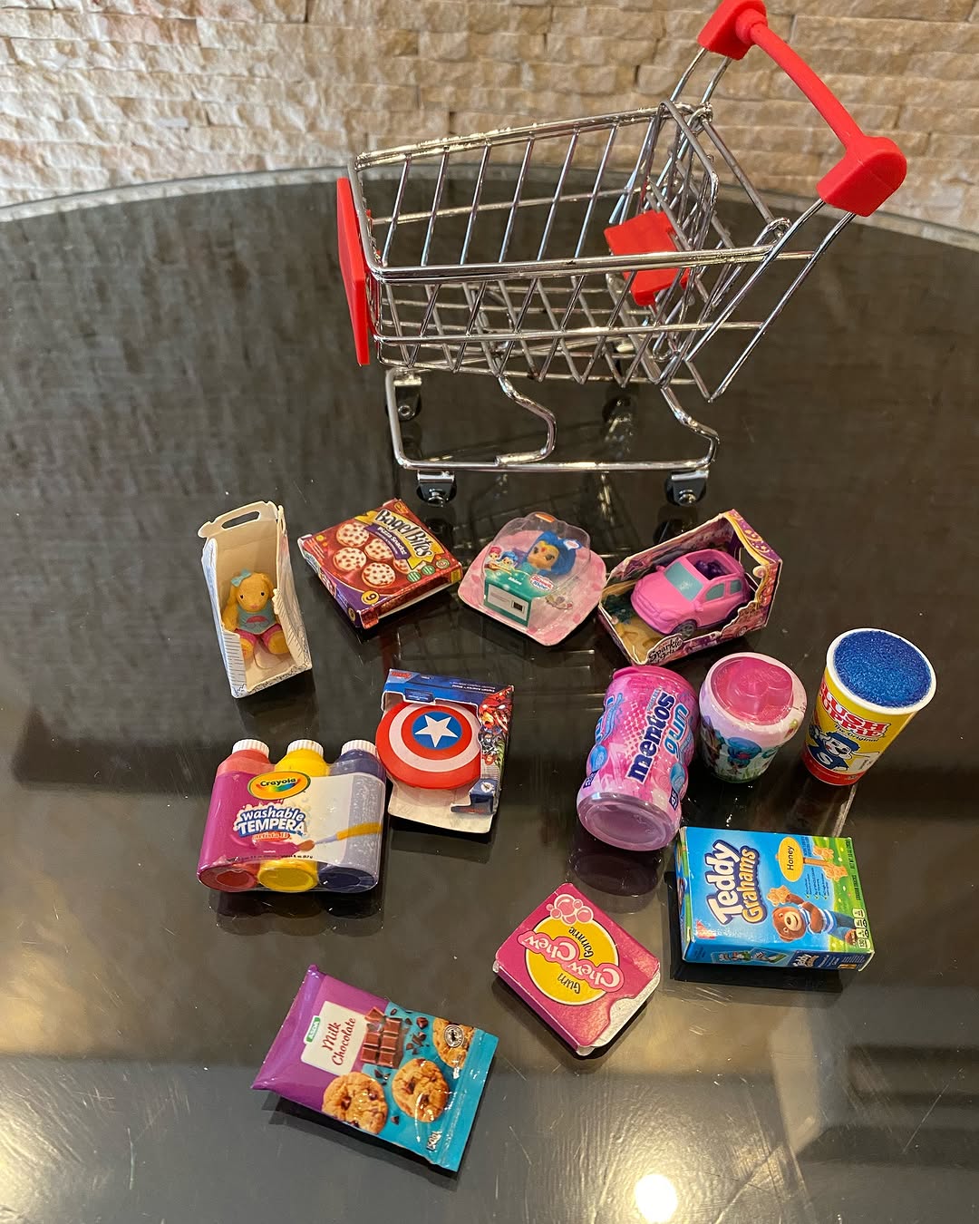 #Sold Price 1950/- Mini Trolly with 12 Minibrands and Miniature Grocery Items Mixed #preloved