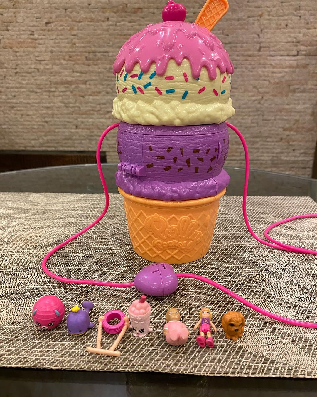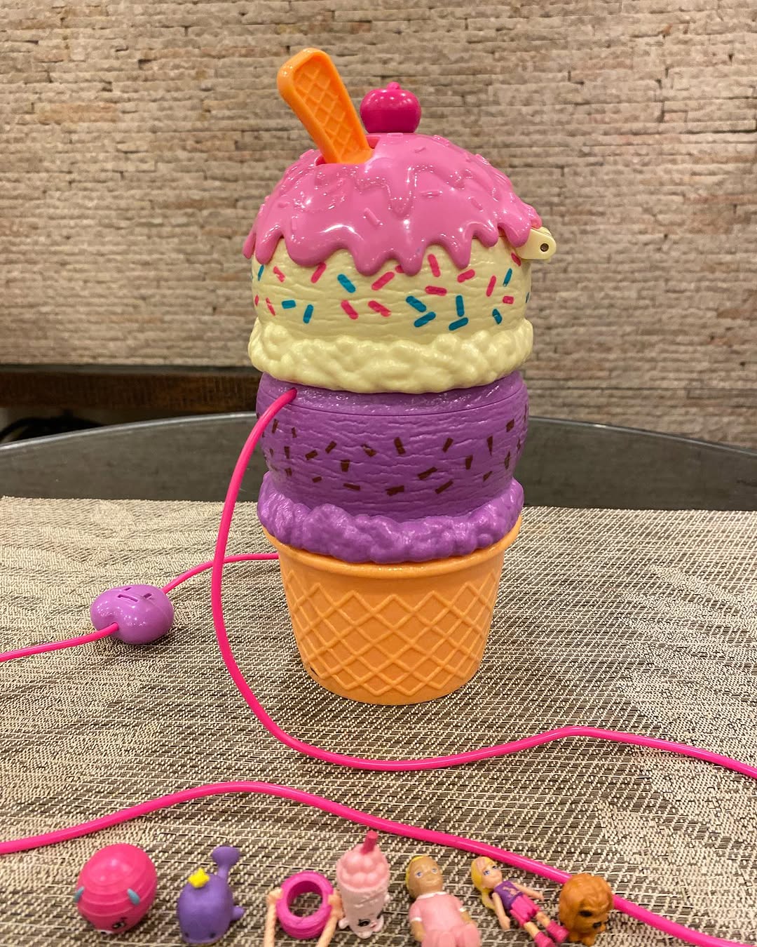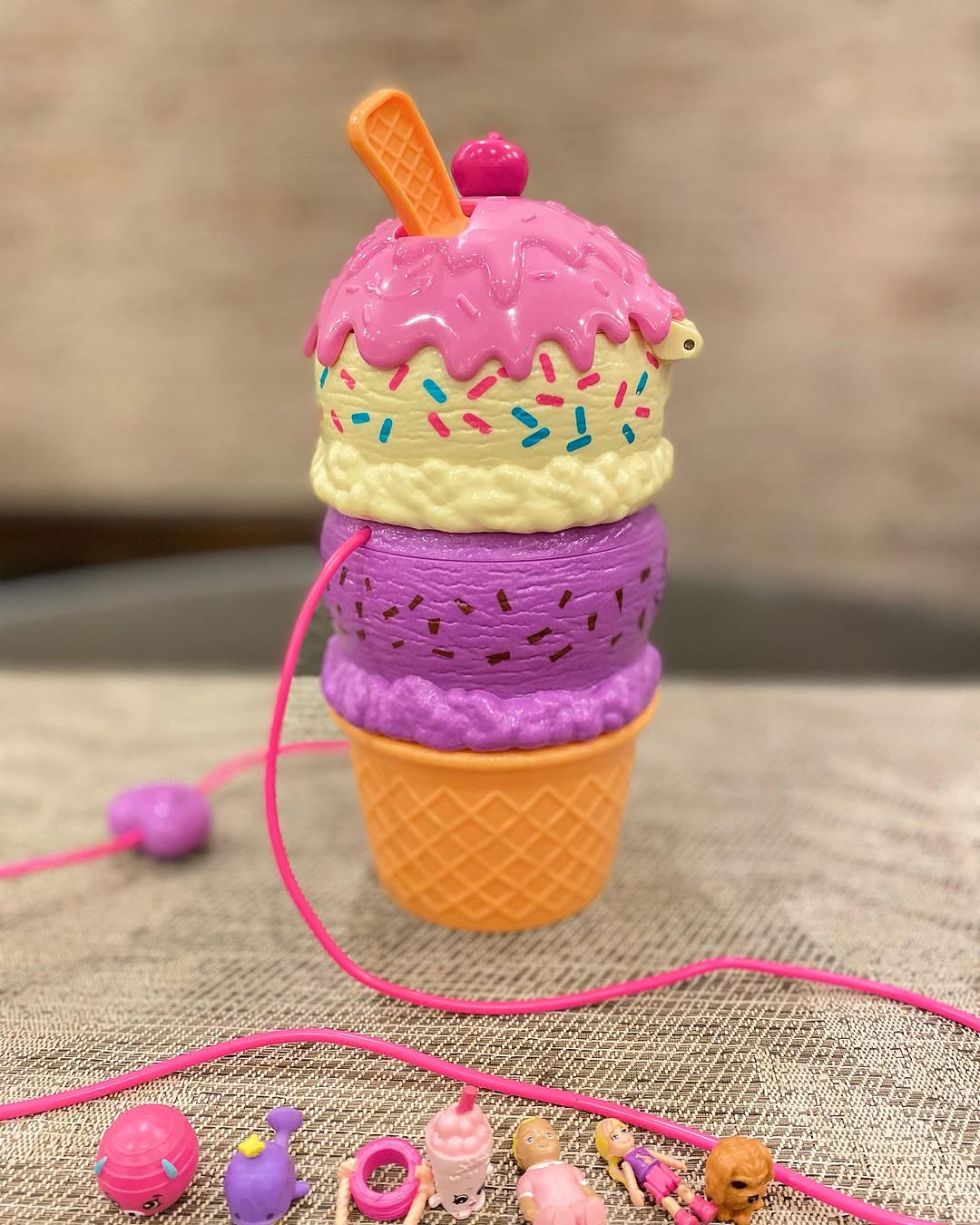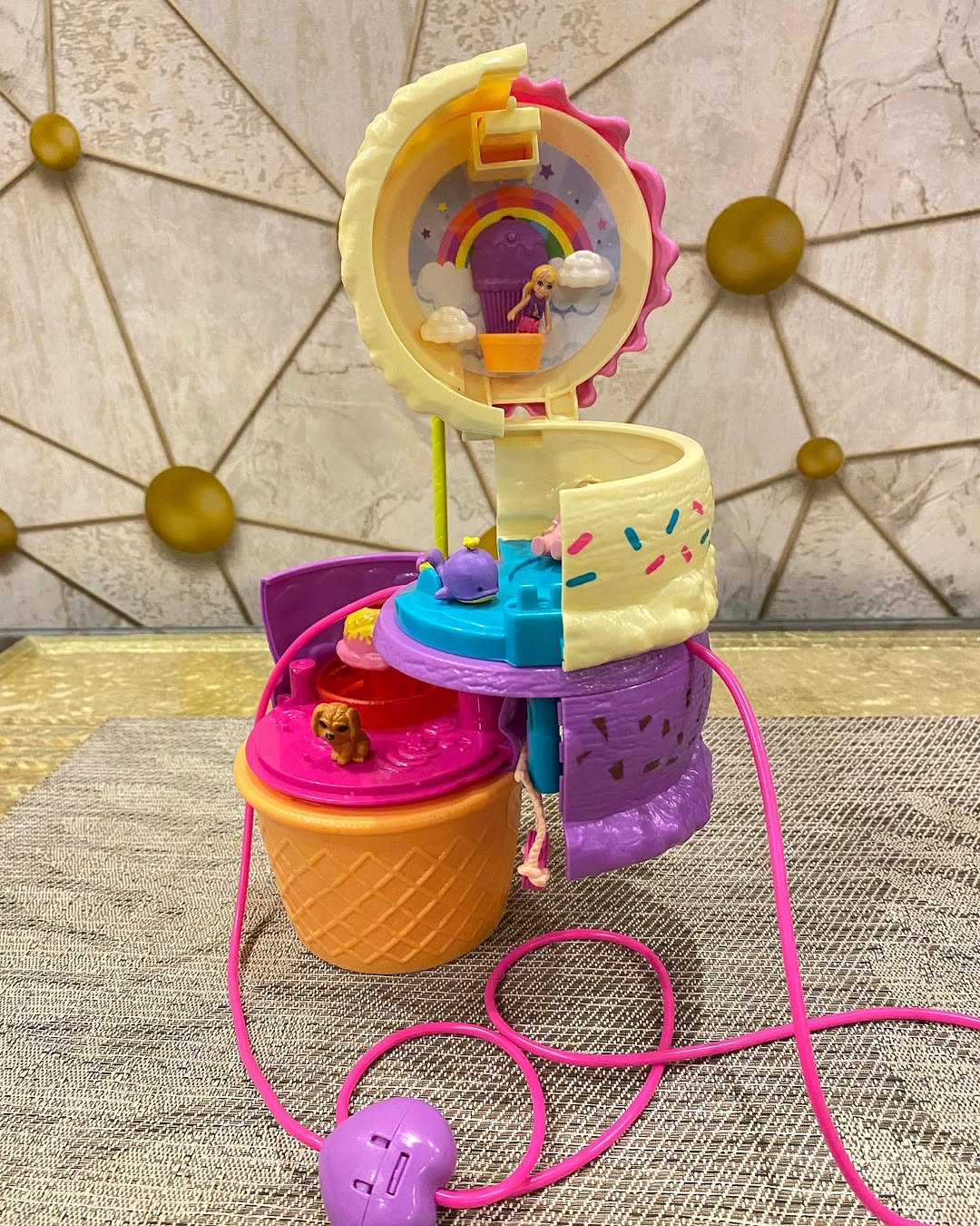 #Sold Price 1450/- Polly Pocket 2-in-1 Travel Toy Playset, Spin ?N Surprise Ice Cream Cone with Micro Polly Doll and Accessories #preloved #pollypocket