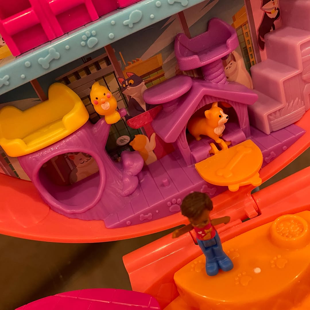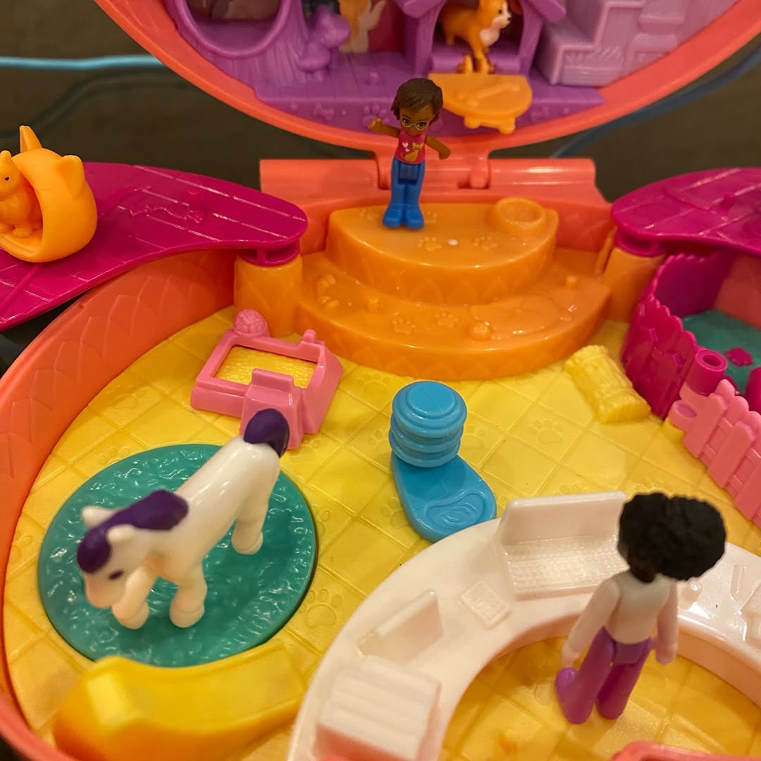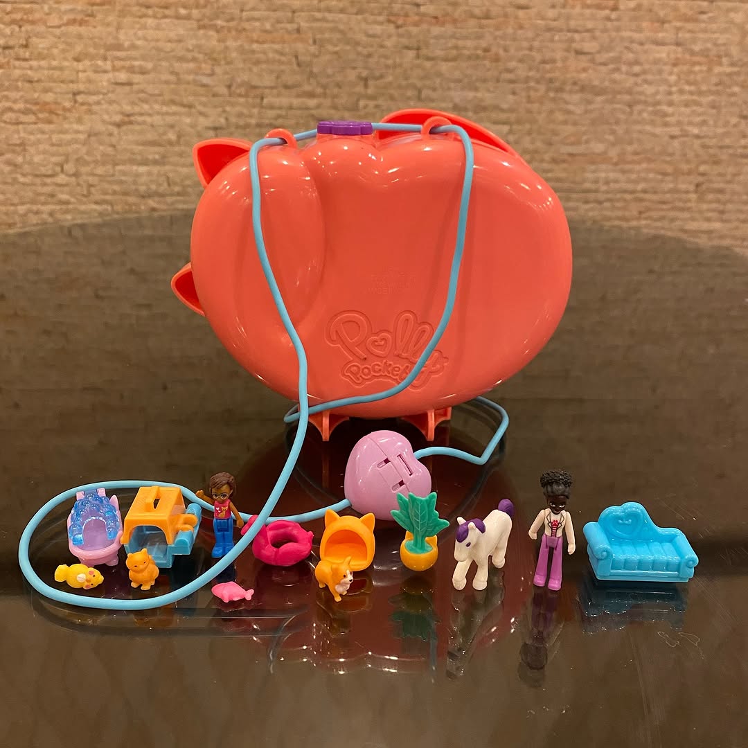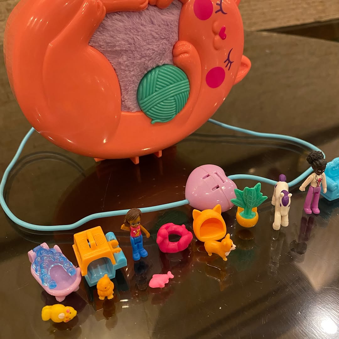 #Sold Price 2500/- Polly Pocket Shani Cuddly Cat Purse with 2 Micro Dolls and 10 plus Accessories, Pop and Swappable Peg Function #preloved