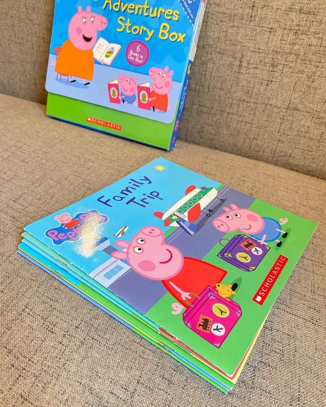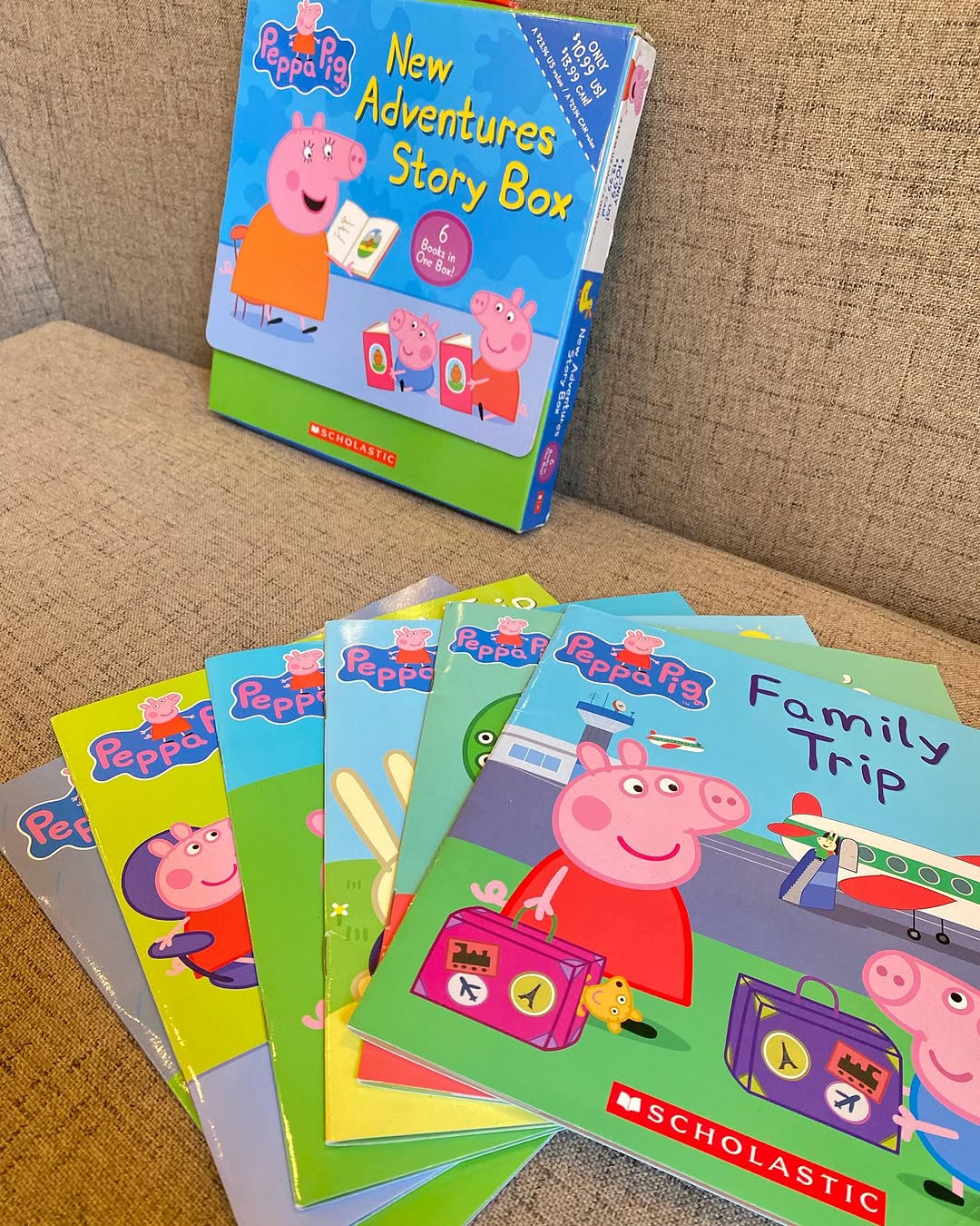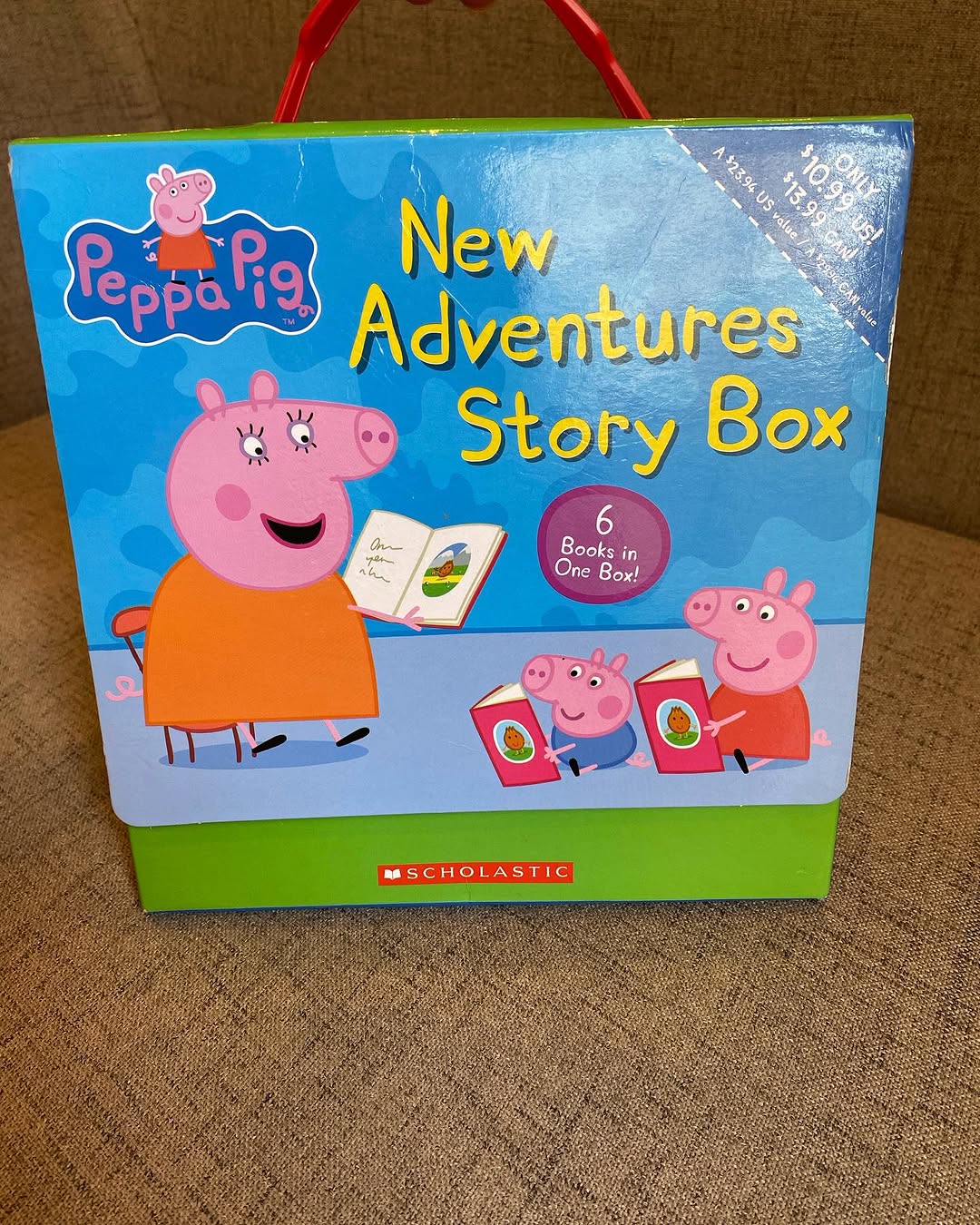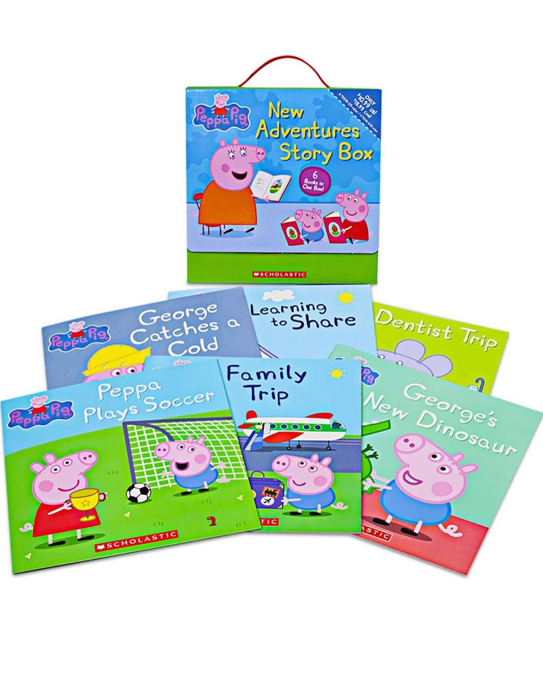 #Sold Price 1550/- Scholastic New Adventures Story Box (Peppa Pig). Six Peppa Pig storybooks in one convenient carrying case with plastic handle.