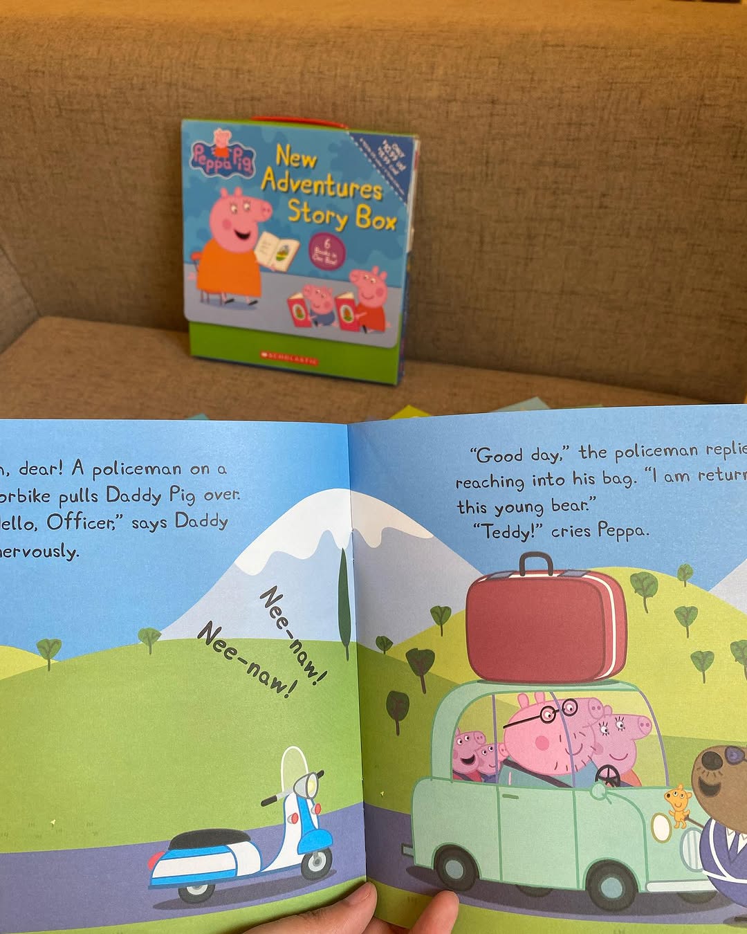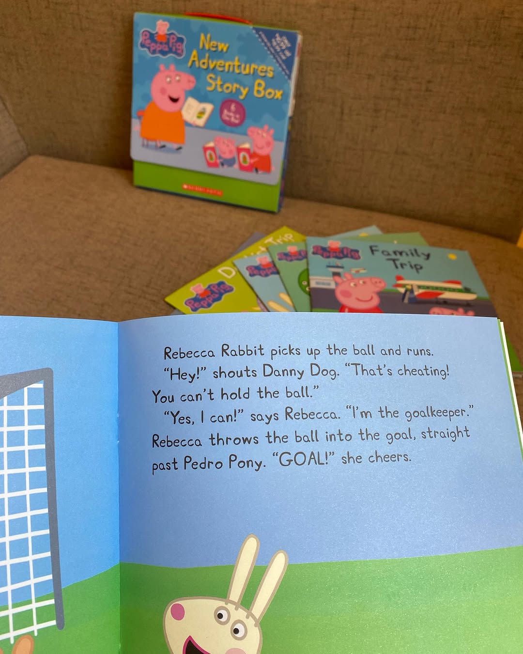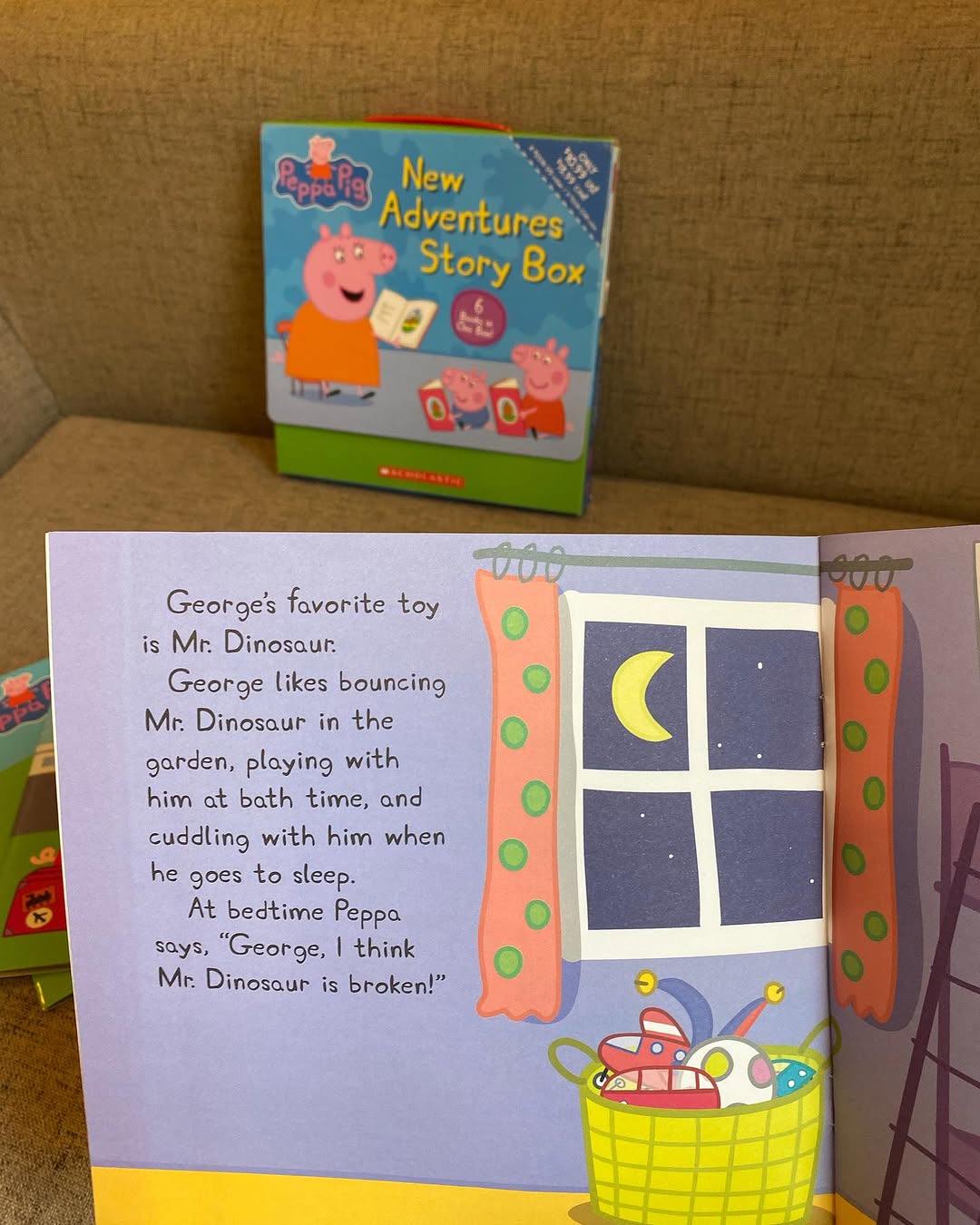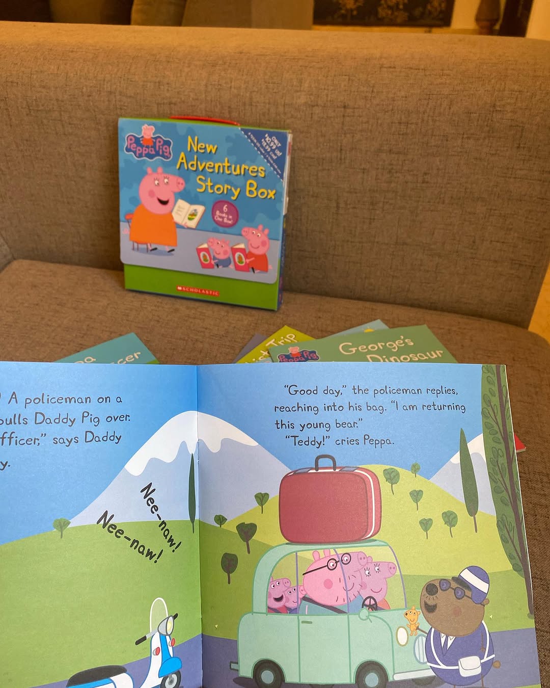 #Sold Price 1550/- Scholastic New Adventures Story Box (Peppa Pig). Six Peppa Pig storybooks in one convenient carrying case with plastic handle.
