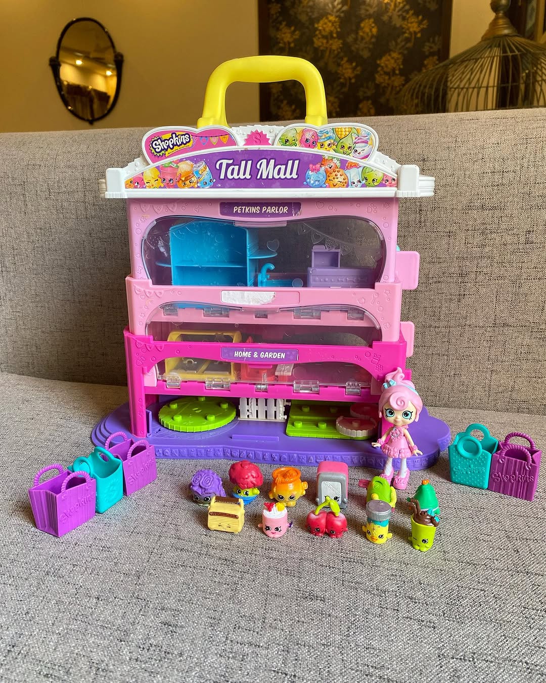 Price 3800/- Shopkins Tall Mall Play set. From tall to small, it?s the Shopkins Mall! Set it up tall to see all departments and play inside the three levels of fun! Spin around the home and garden centre, grab a seat for a treat in the food court or spoil your pet at the petkins parlour. When the shopping?s complete, push it down to make the mall small so it?s just the right size to carry and store!!