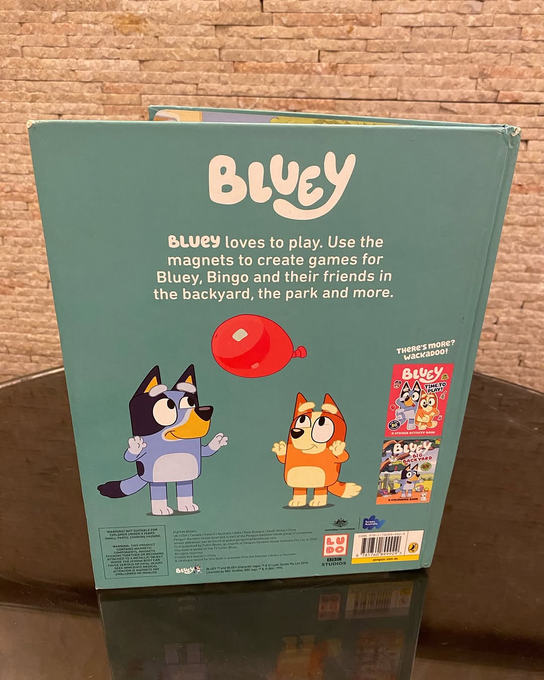 Help Bluey the blue healer create fun games for her friends with this magnet book! Based on the wildly successful animated series Bluey, as seen on Disney+