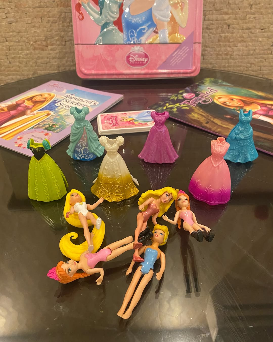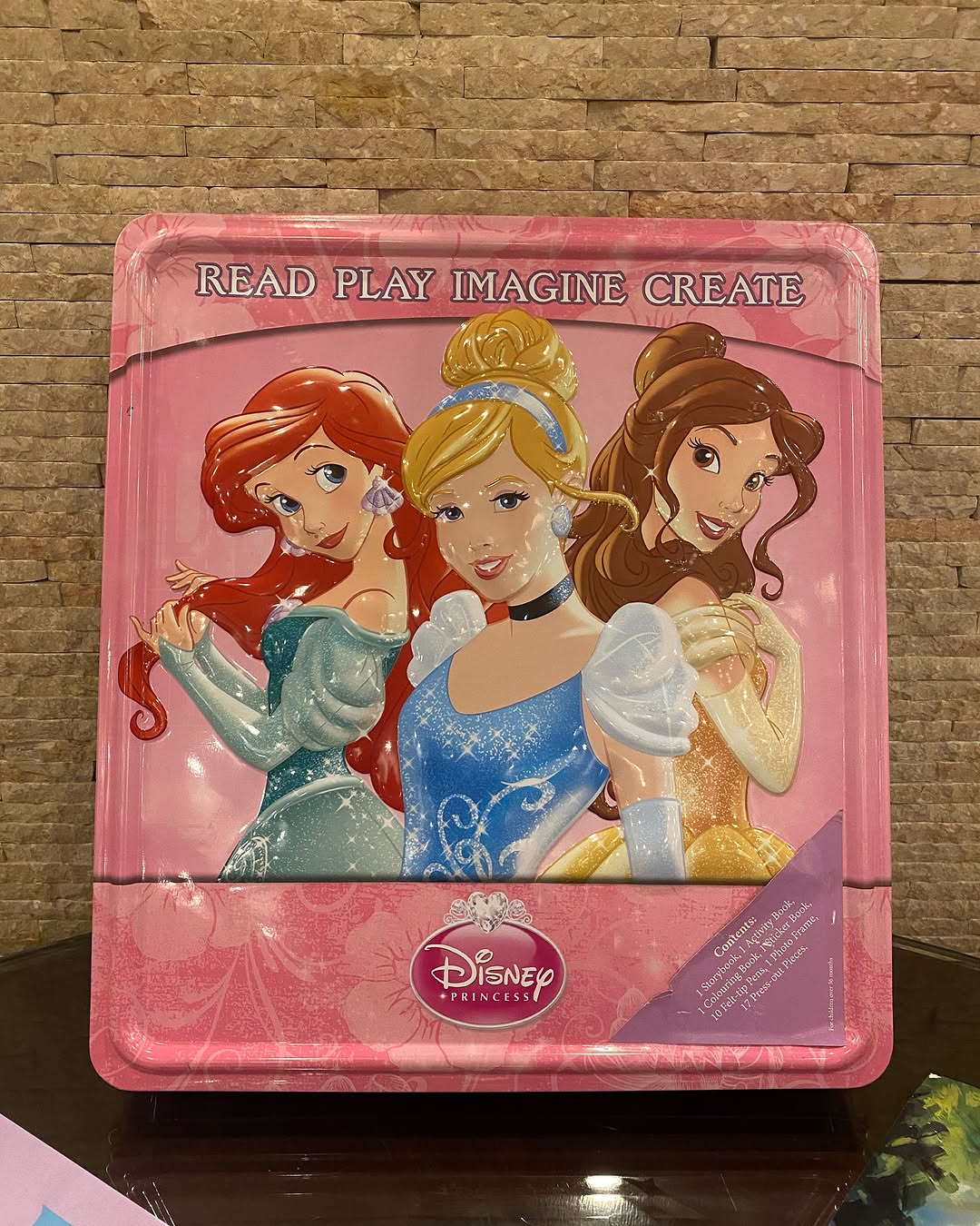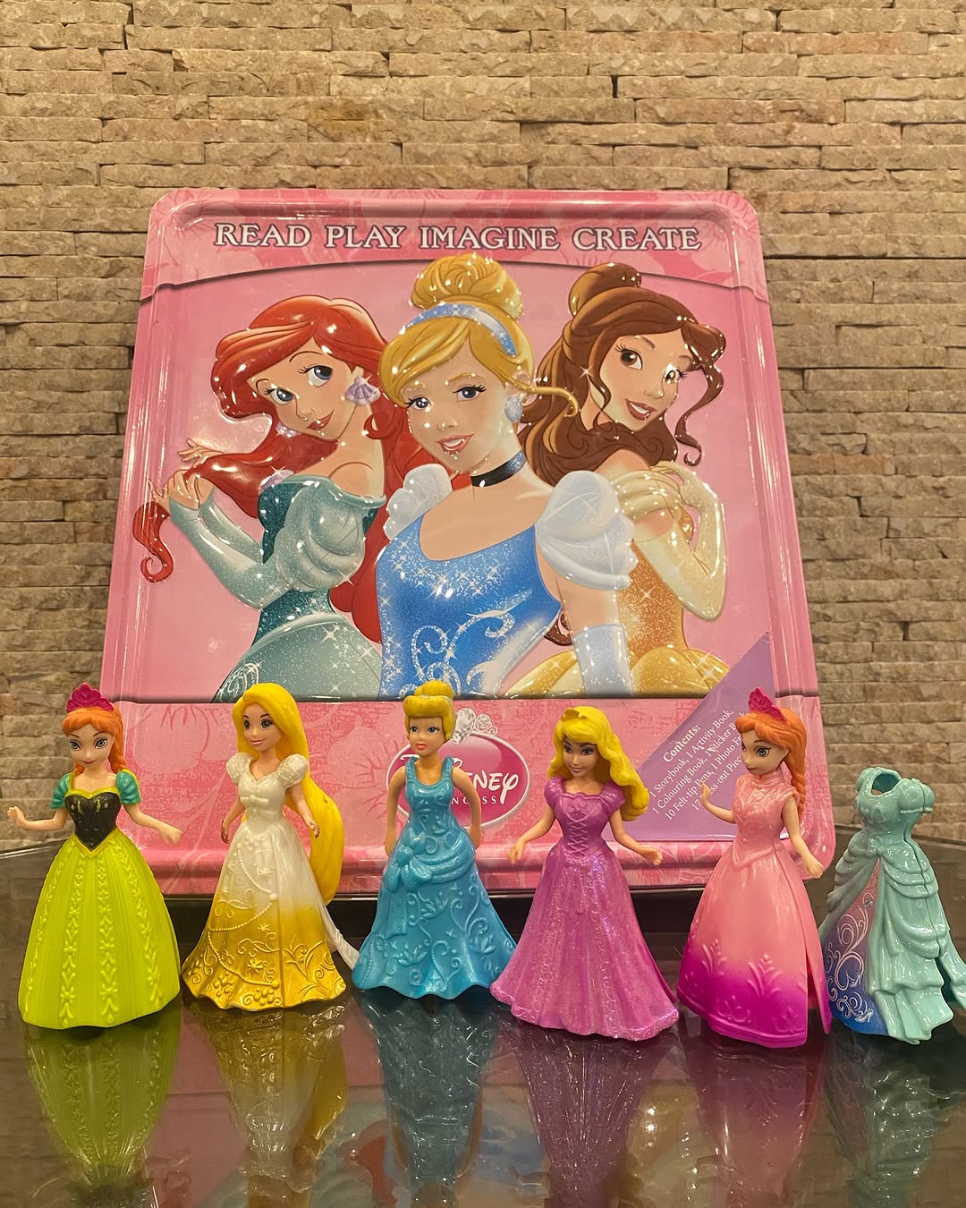 #Sold Price 3500/- Tin Box with Story Books and 5 Royal Clip Dolls #preloved