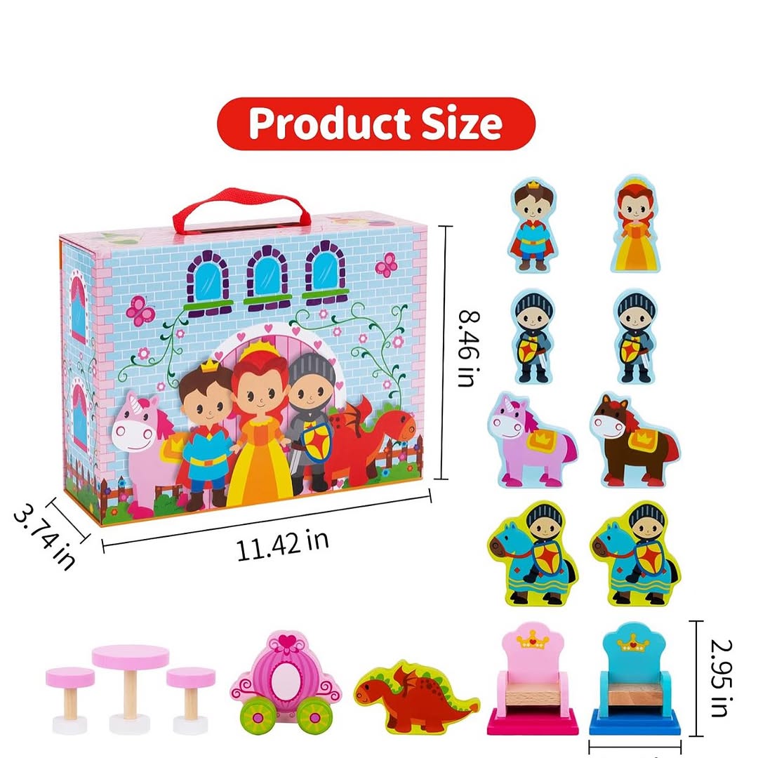TOOKYLAND Princess Castle Box Playset – 14pcs – Portable Toy Set with Wooden Figurines and Accessories, Ages 3+ #preloved